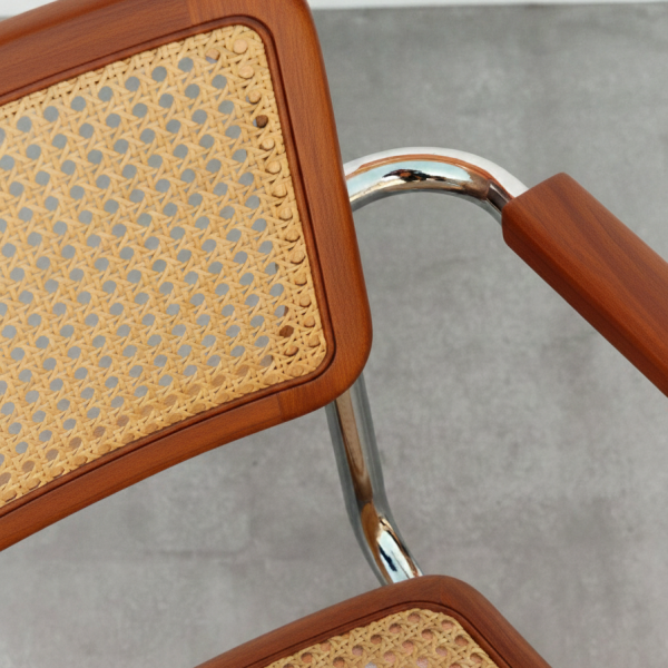 En 1928, la silla Cesca de Marcel Breuer rompió con lo establecido al sustituir las cuatro patas tradicionales por una estructura de acero tubular, integrando por primera vez la rejilla de ratán en un lenguaje moderno.