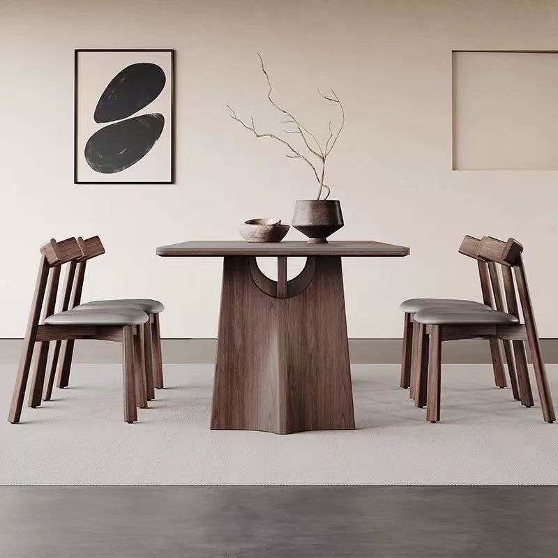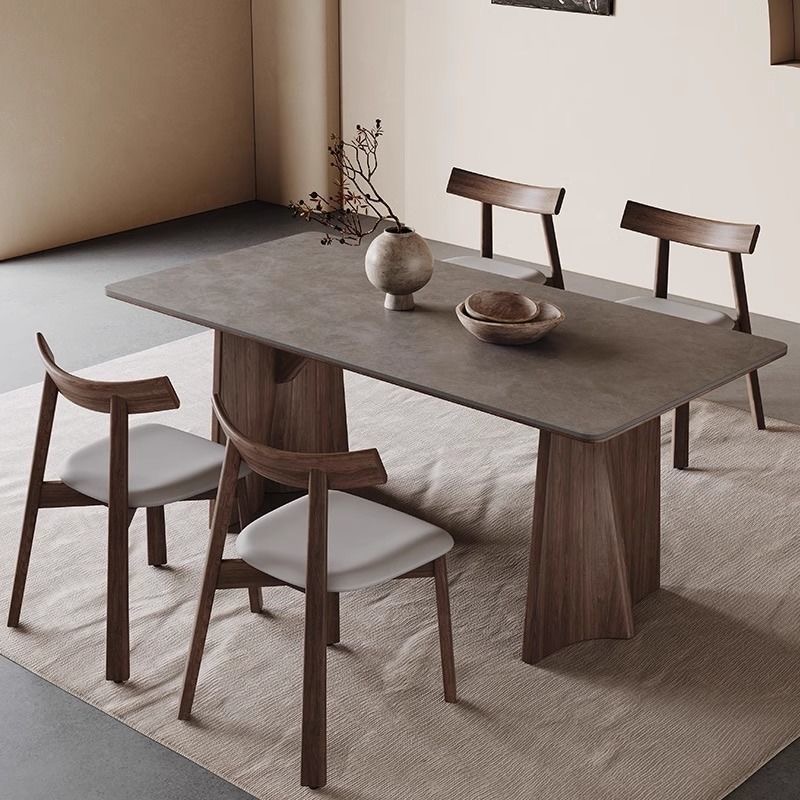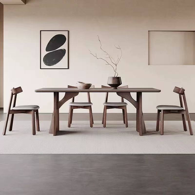 Set de mesa y sillas comedor en madera de abedul, piedra natural sinterizada y sillas en fresno macizo