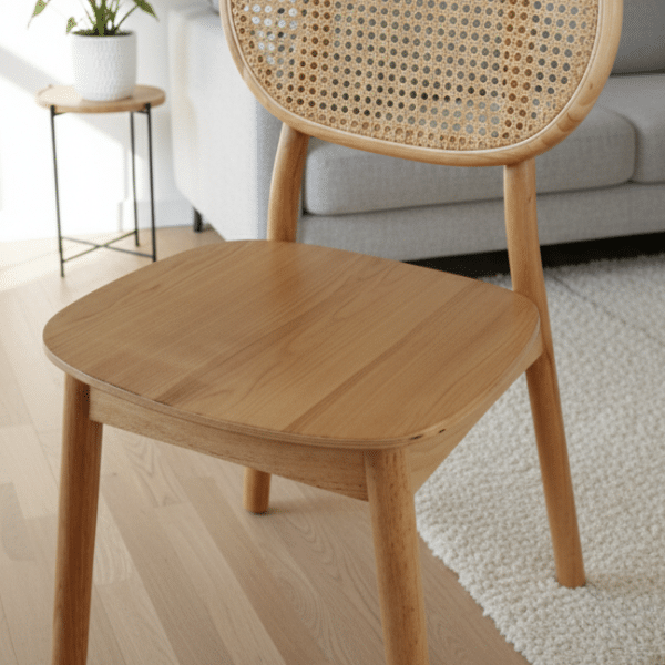 Silla de comedor en madera maciza de hevea y rejilla de ratan