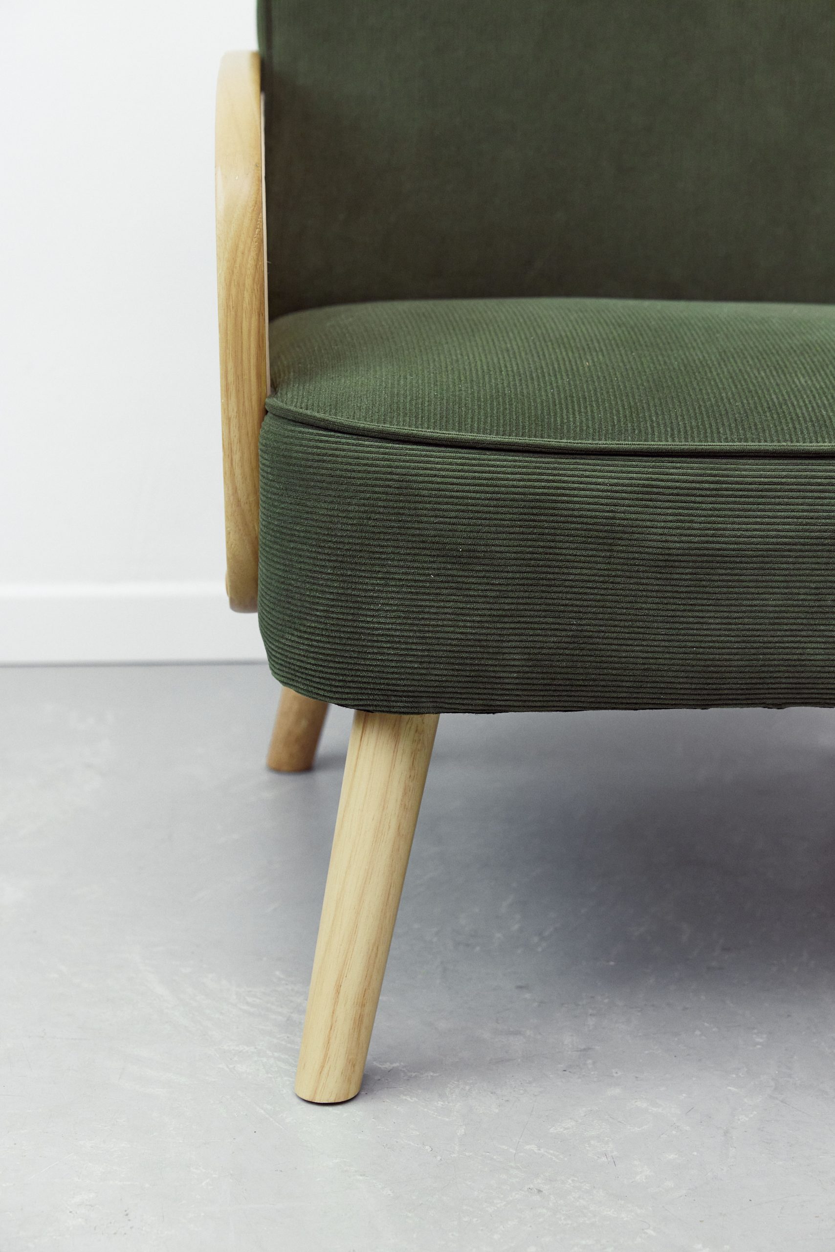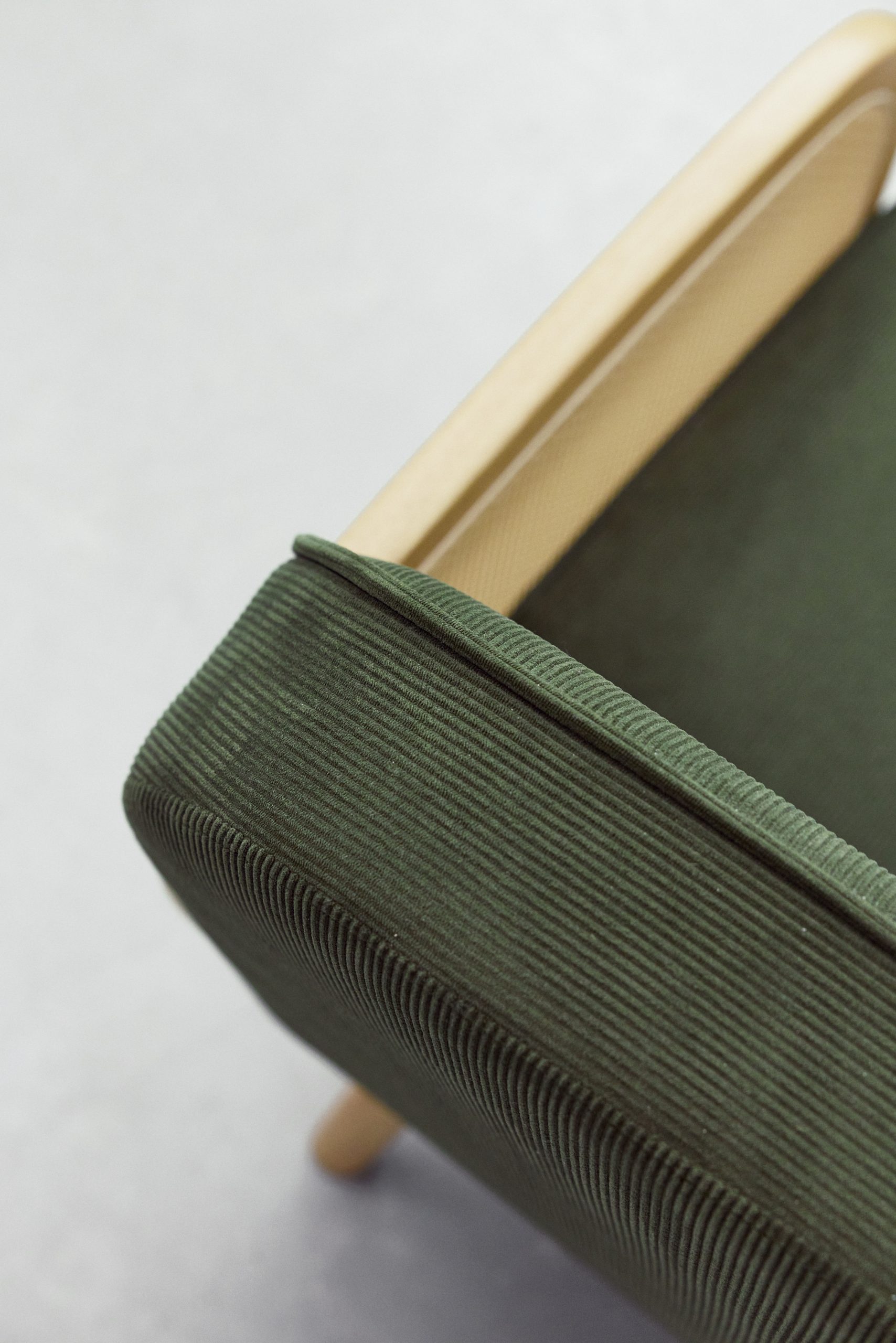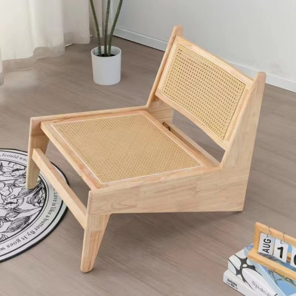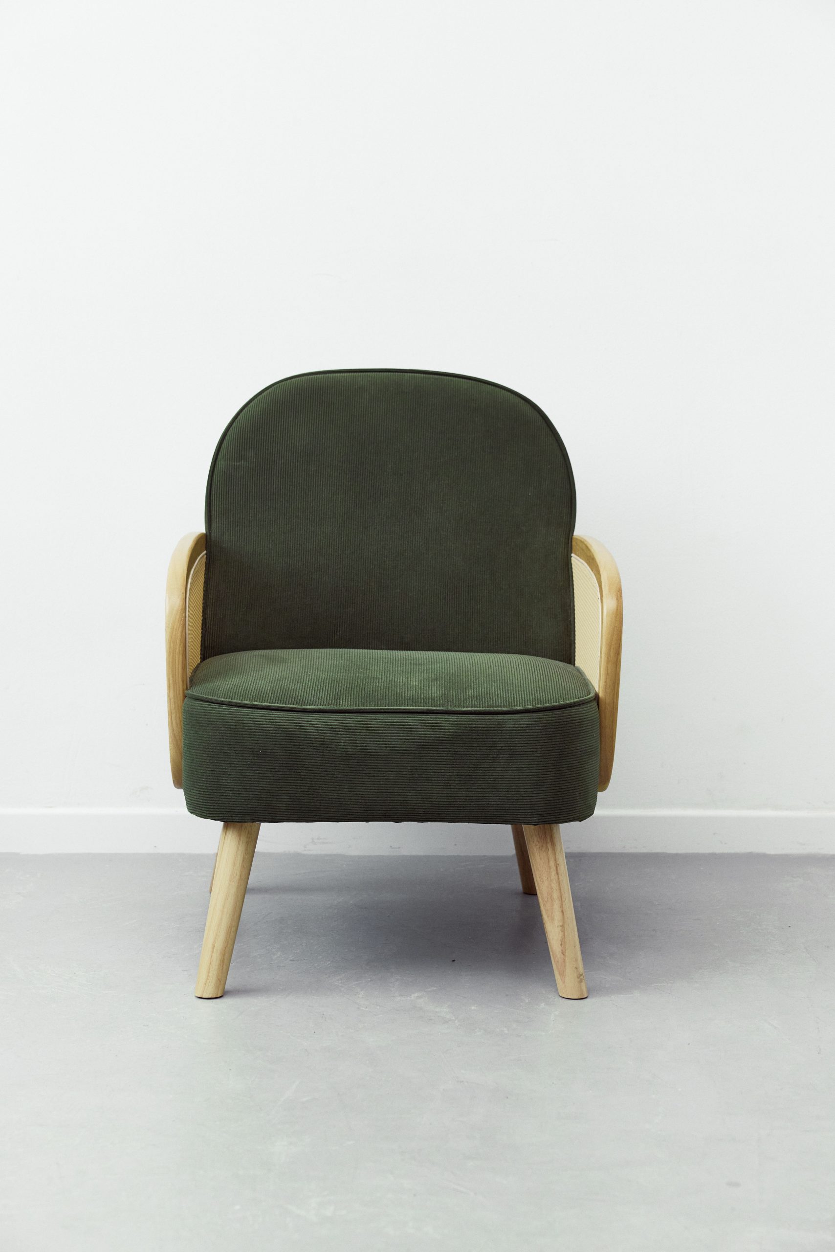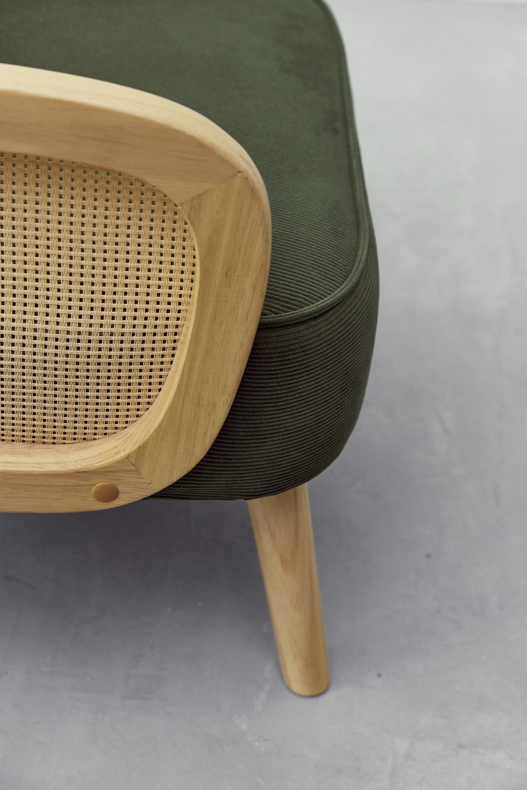 Sillon tejido en micropana suave, madera maciza de teca y rejilla de mimbre