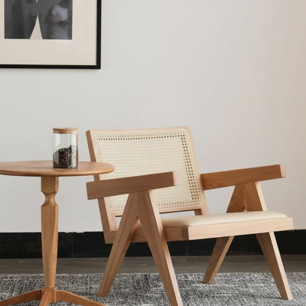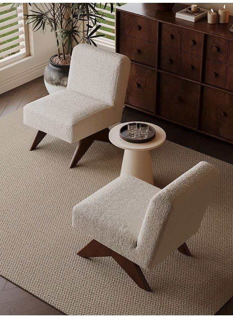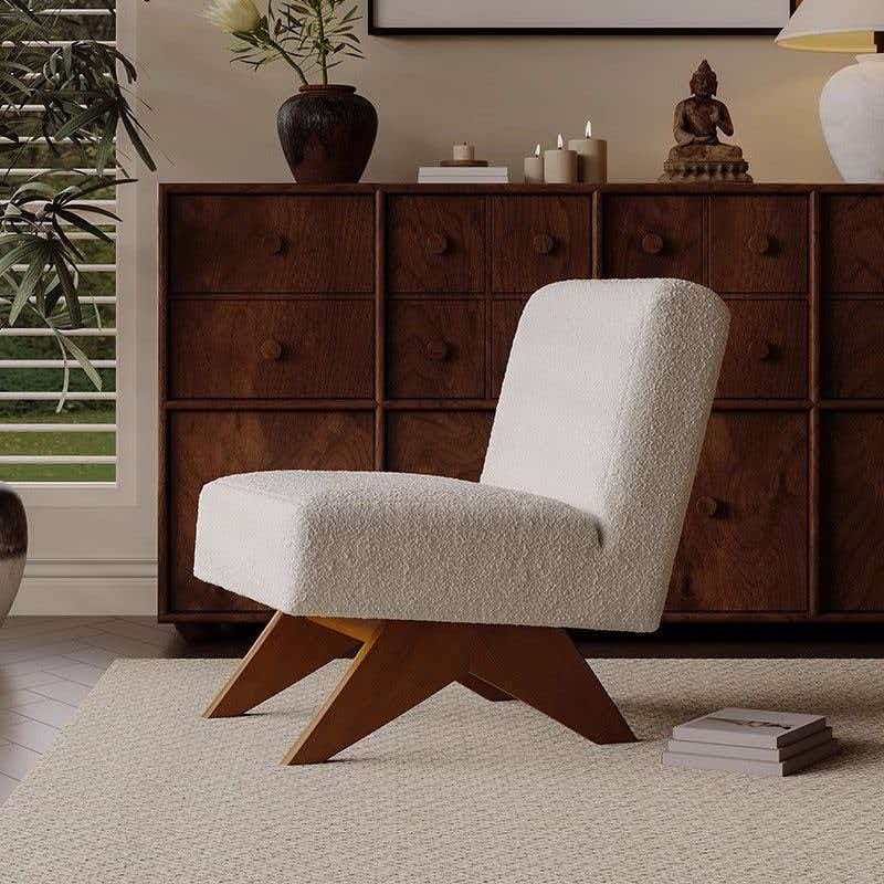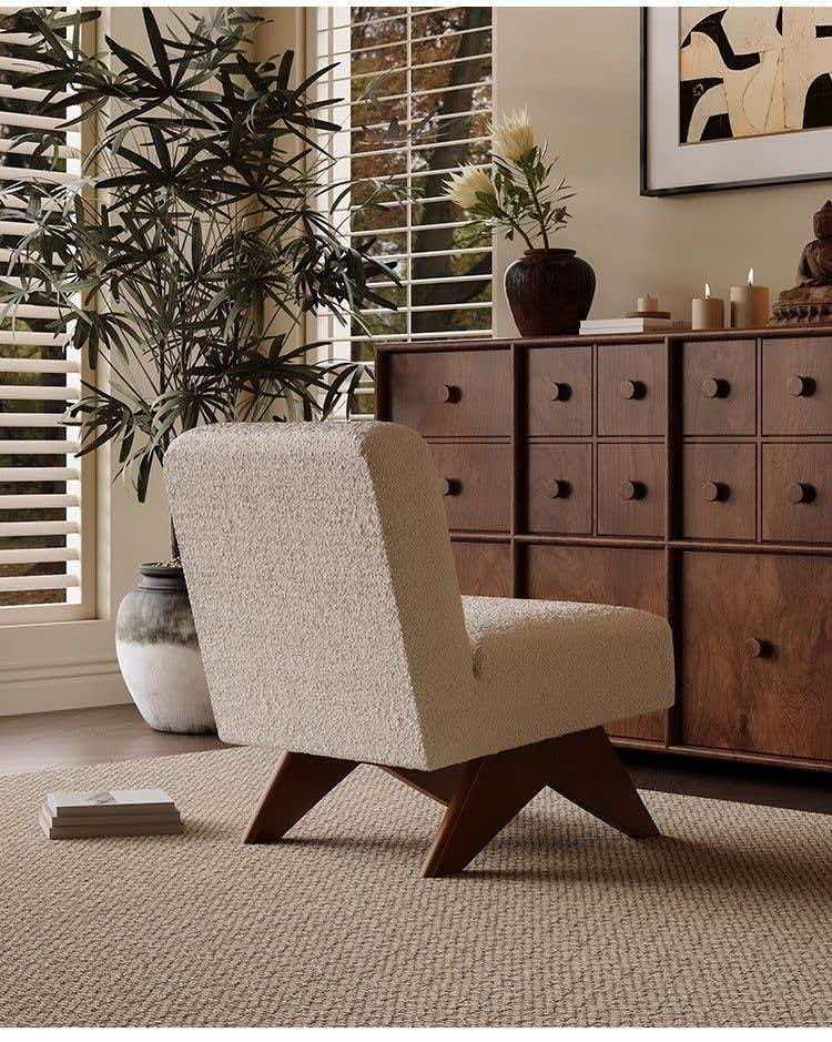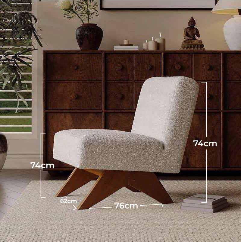 Sillon en tejido de fino boucle y madera maciza de fresno