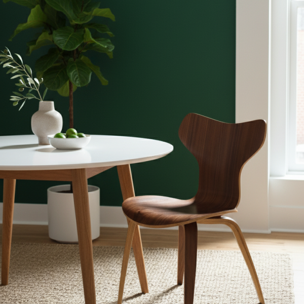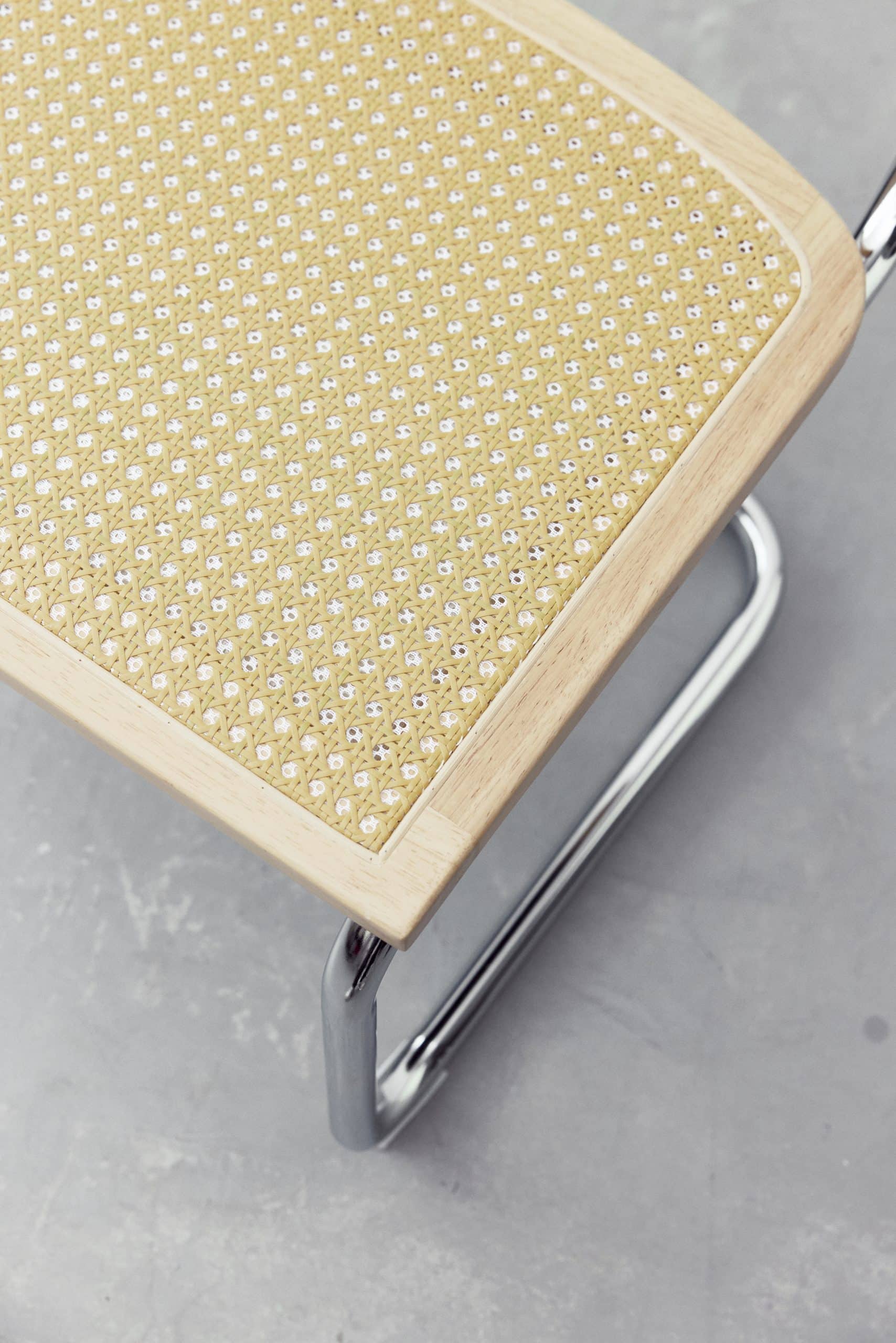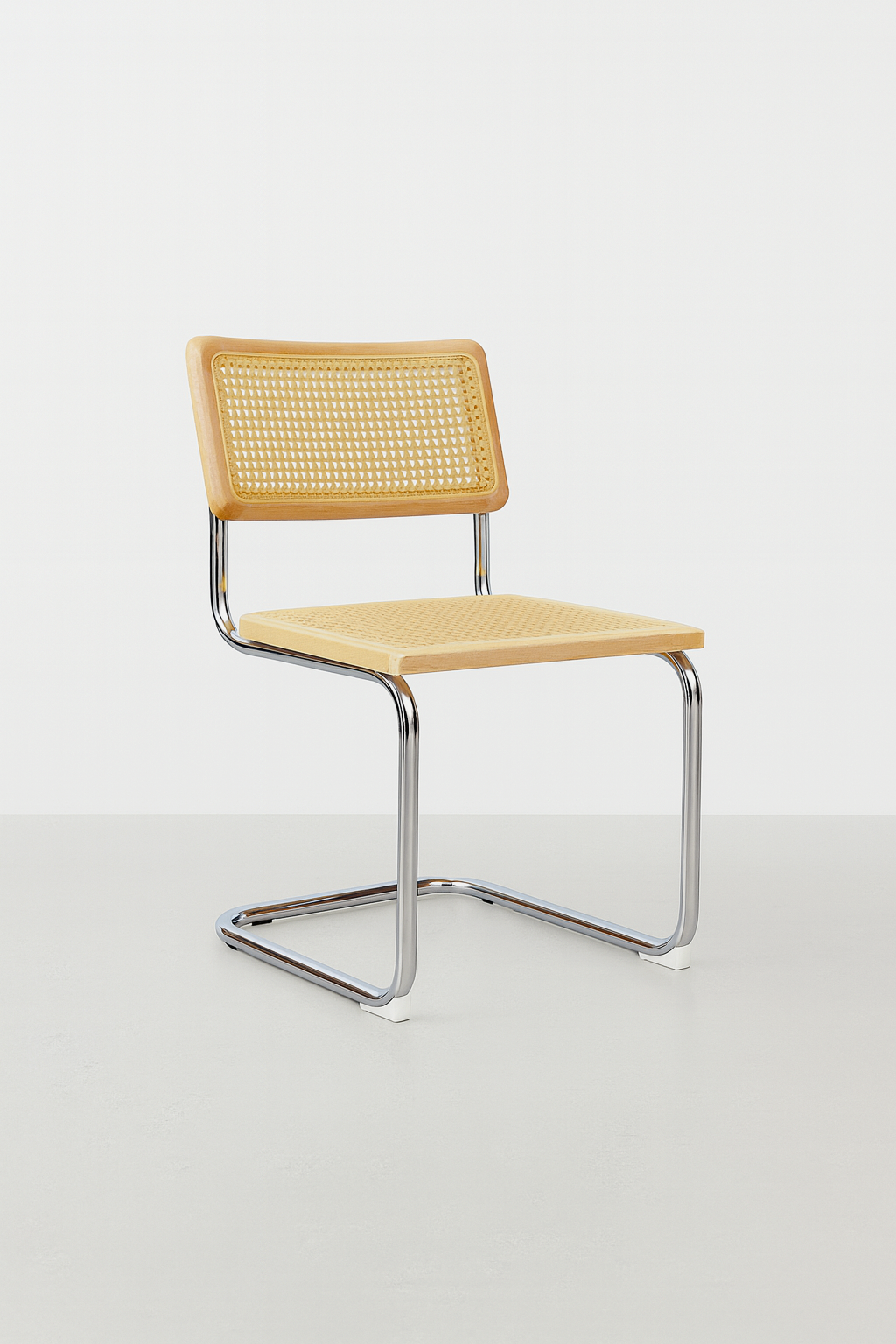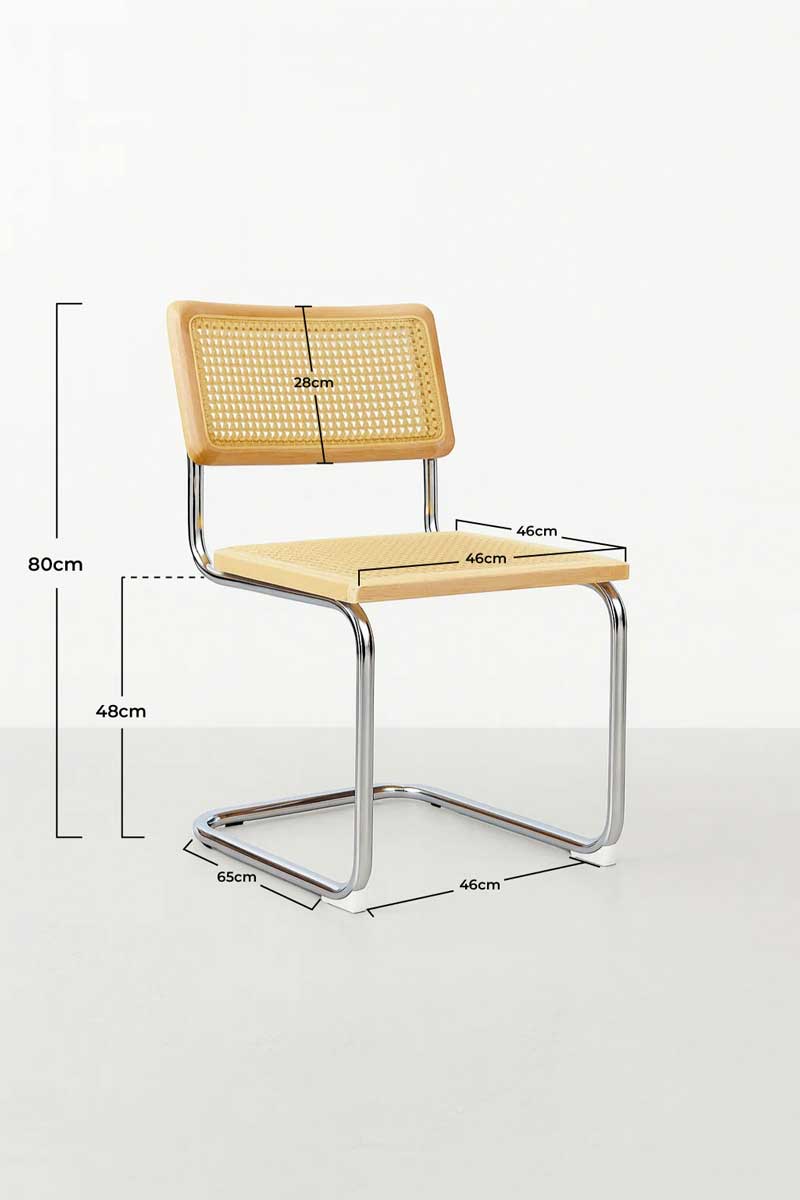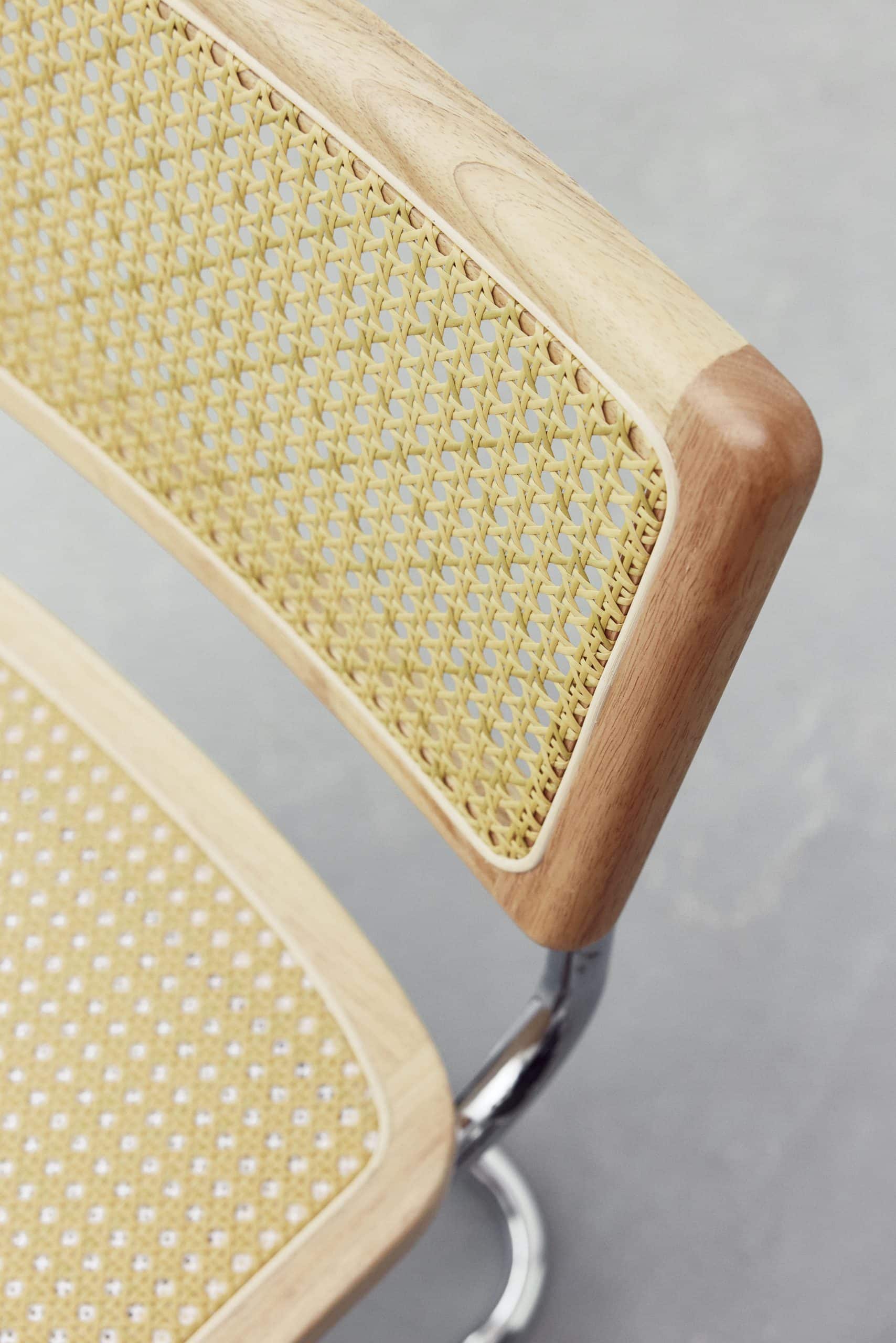 Silla de comedor en madera maciza de hevea y rejilla de ratán