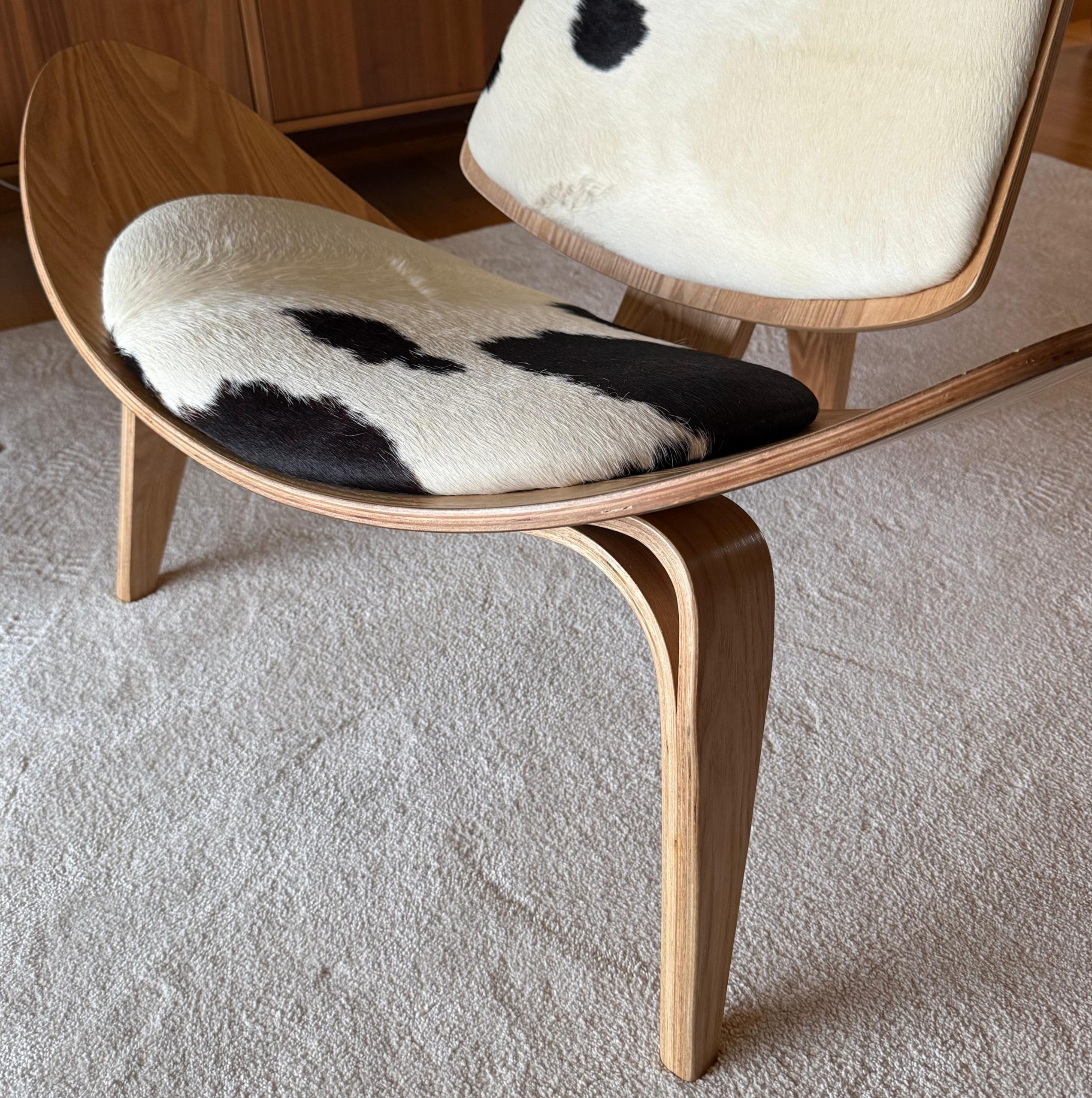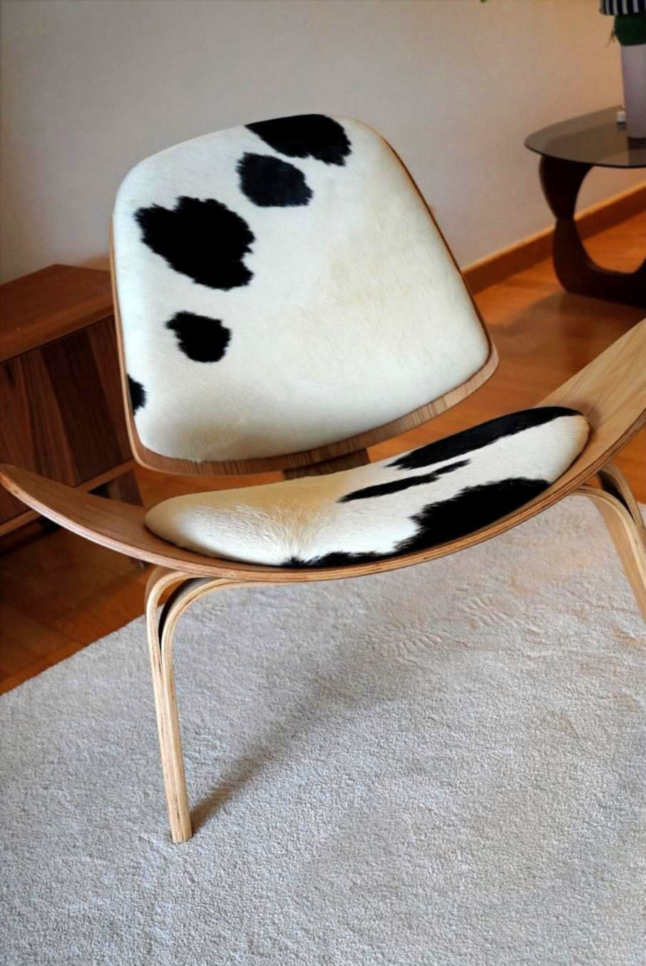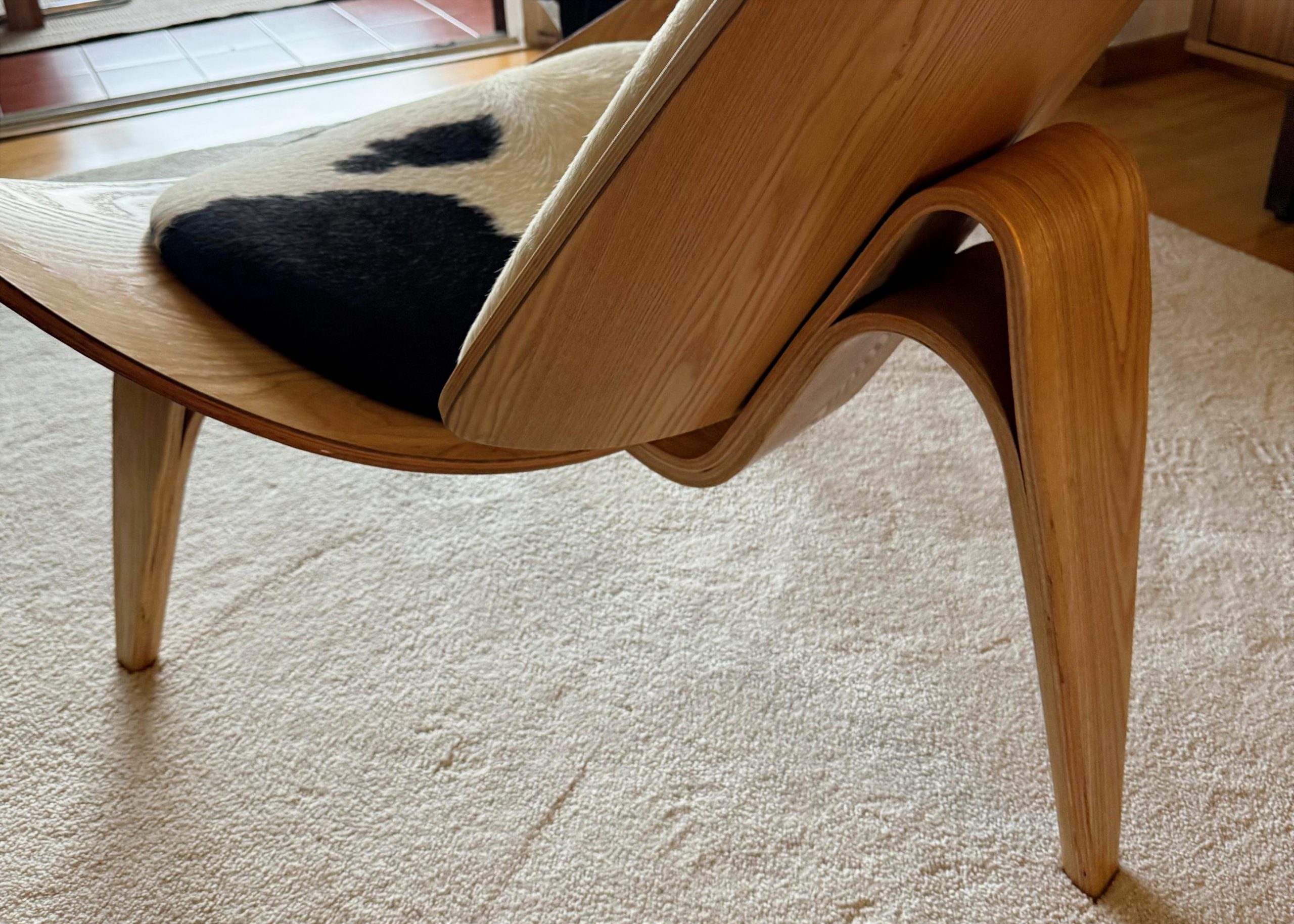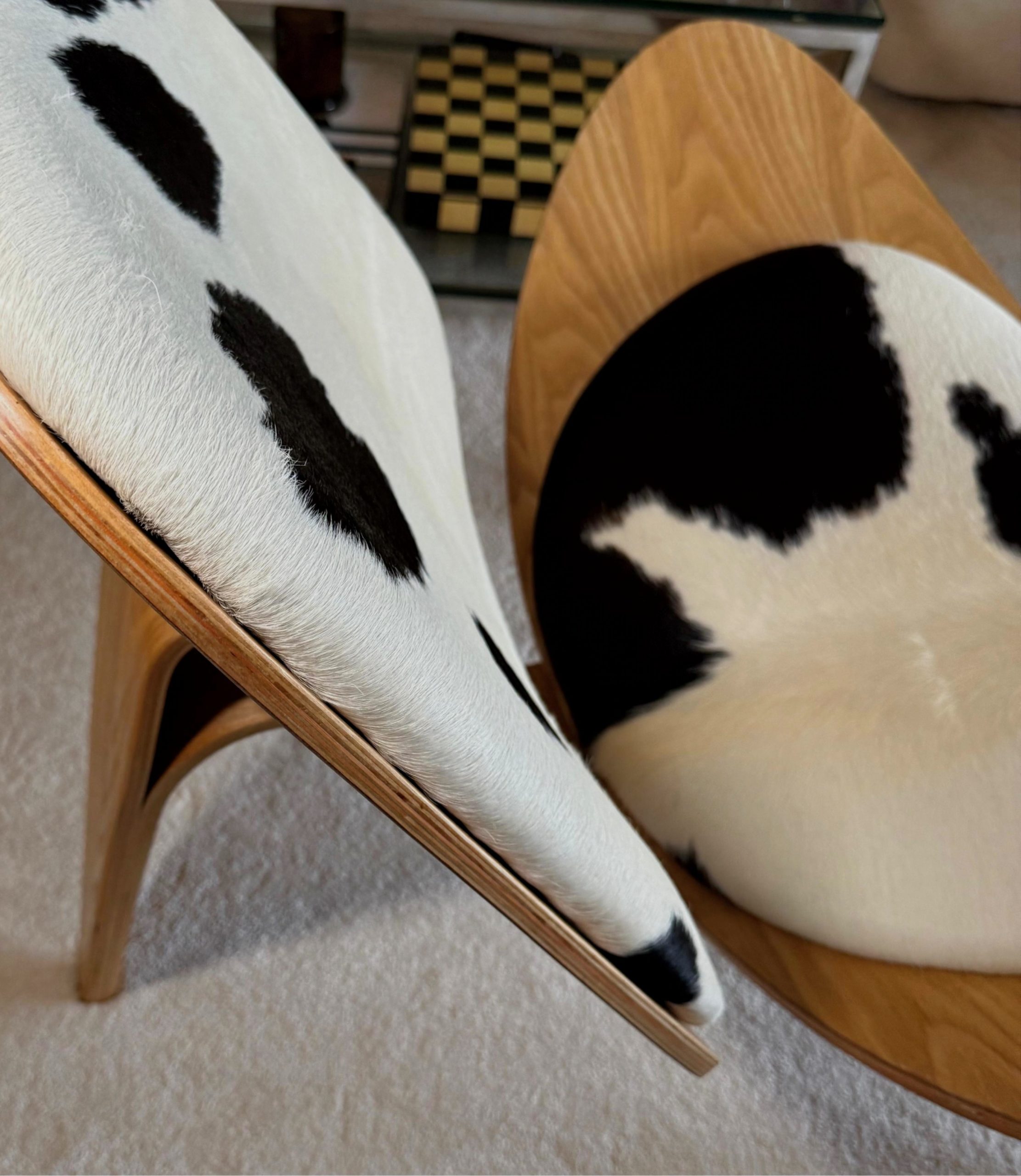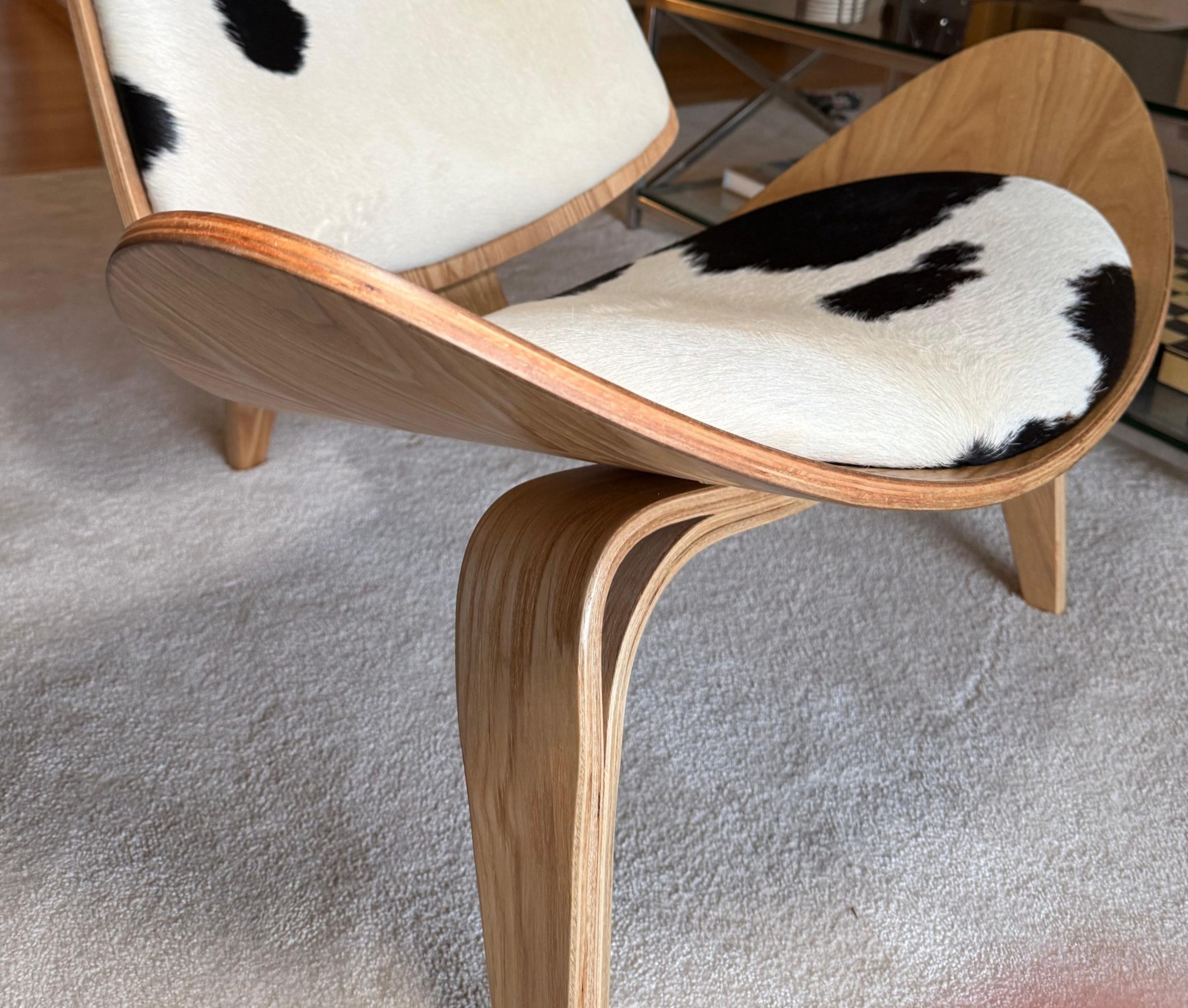 Sillón en madera de fresno laminado y autentica piel de vaca