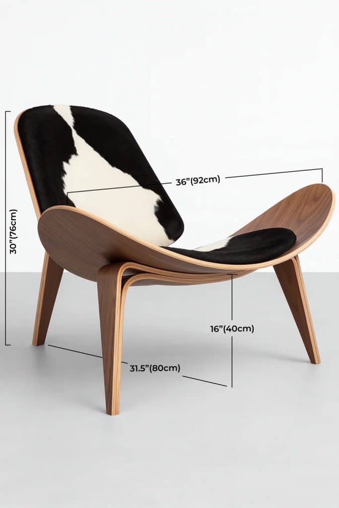 Sillón en madera de fresno laminado y autentica piel de vaca