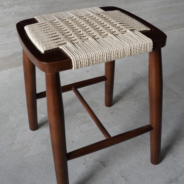 Lucía, una pieza encantadora y funcional, elaborada en madera maciza de teca con asiento trenzado artesanal disponible en acabado natural o nogal. Este taburete aporta calidez y un toque natural al salón, la cocina o cualquier rincón donde se busque confort y personalidad