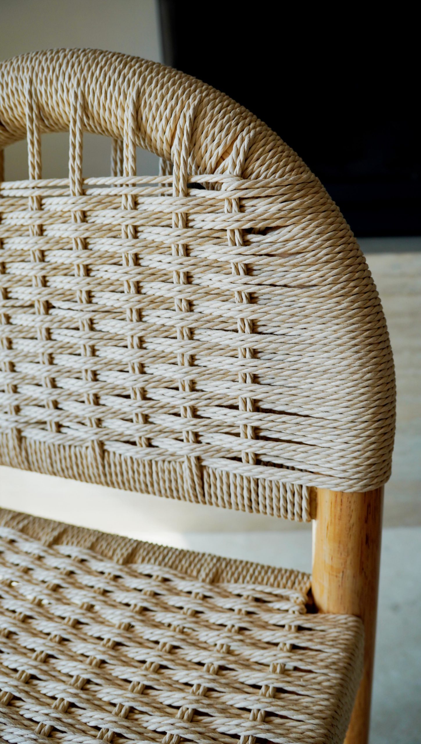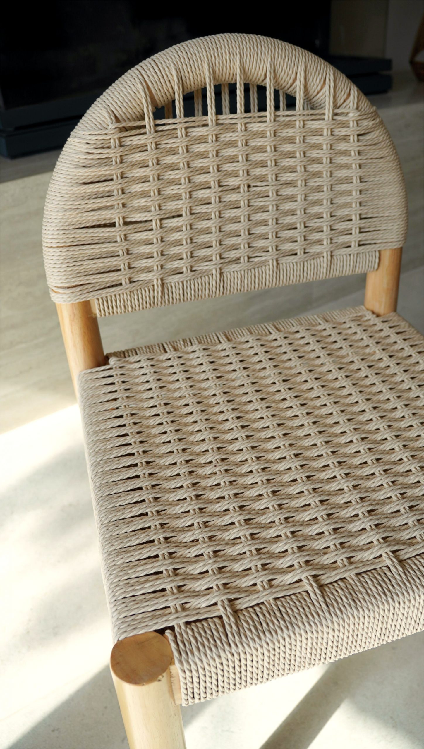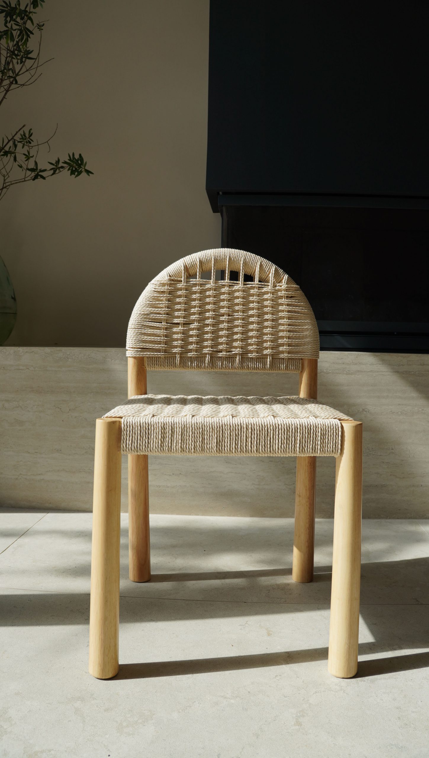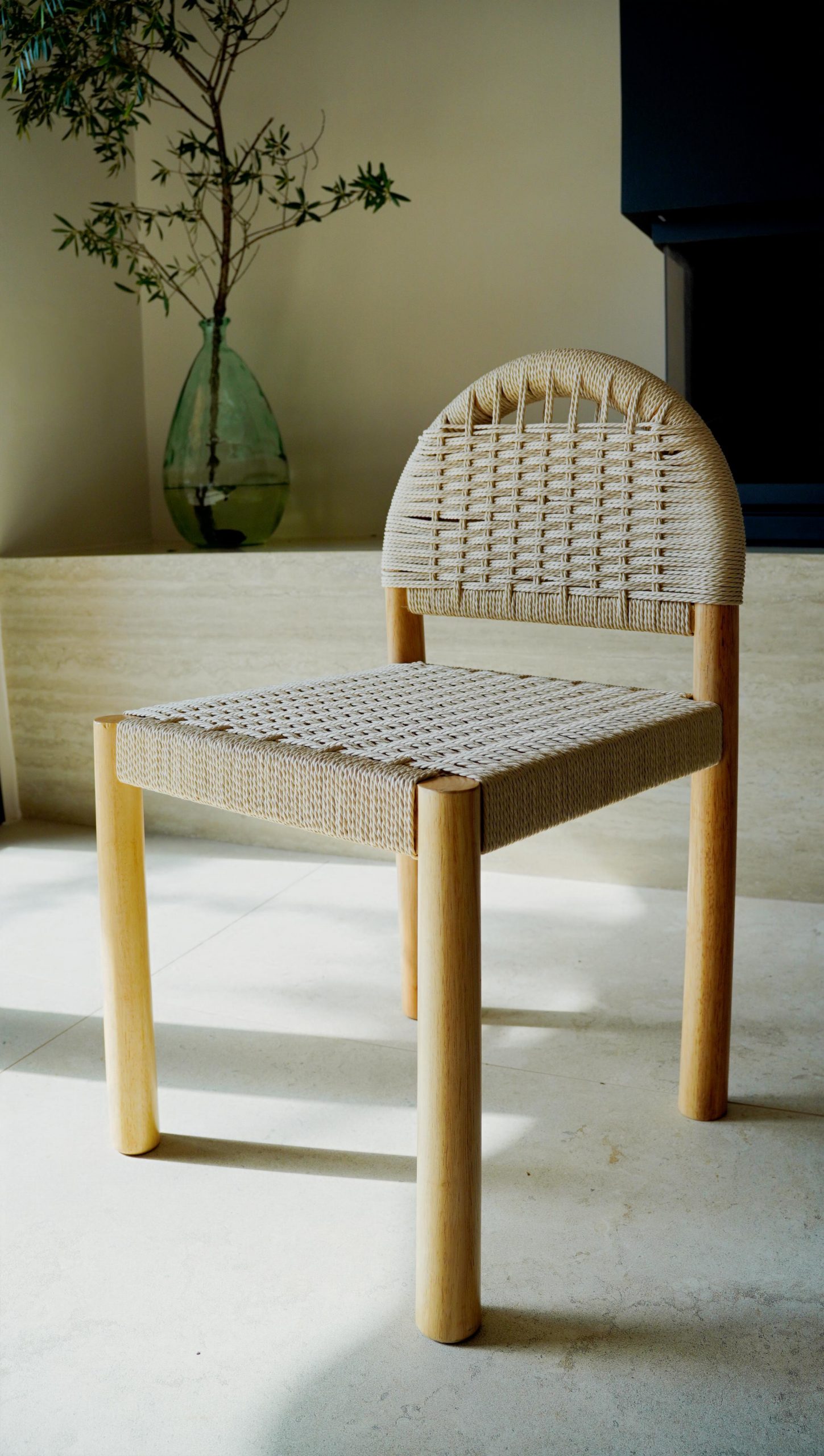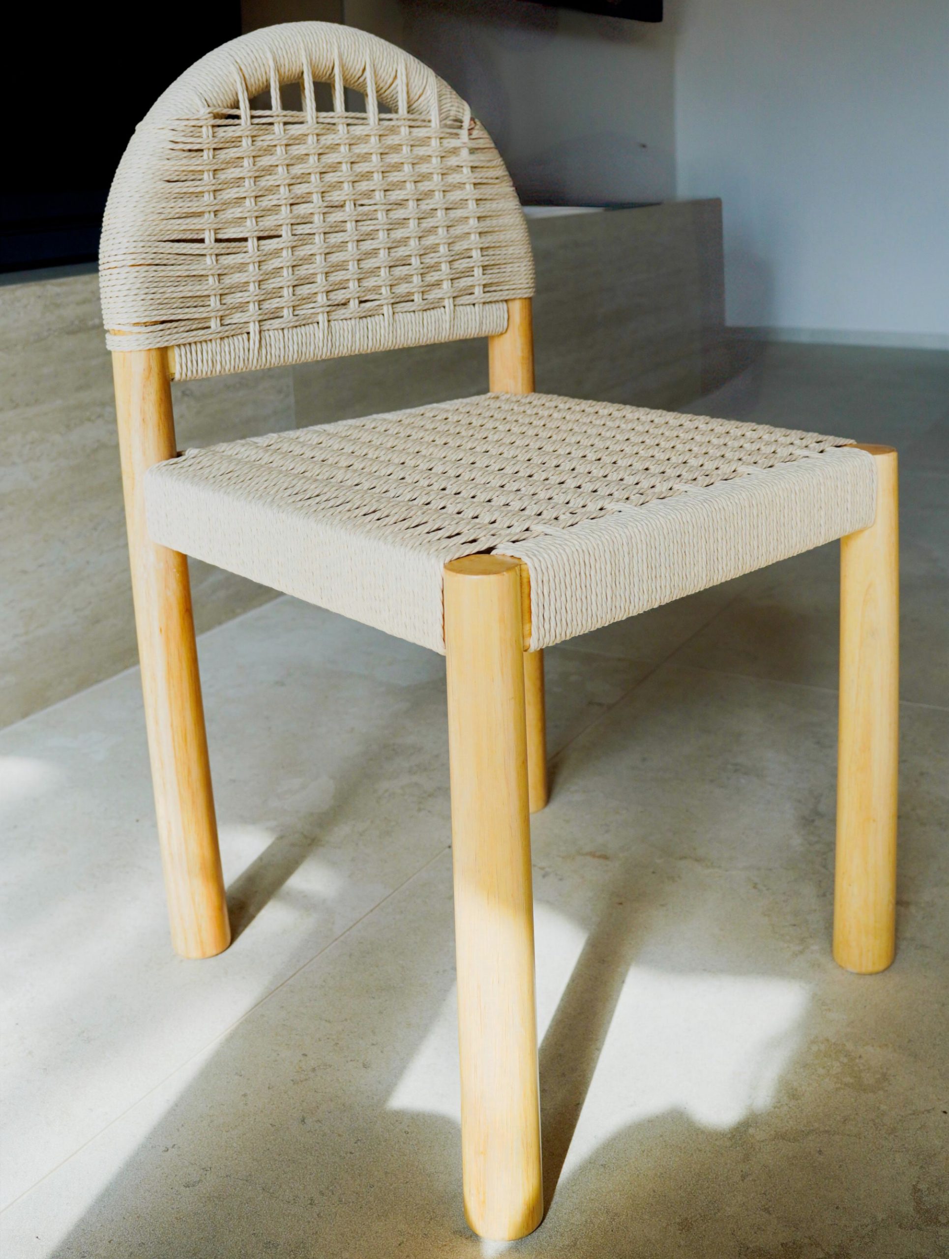 Silla de comedor en madera maciza de hevea con respaldo y asiento trenzado