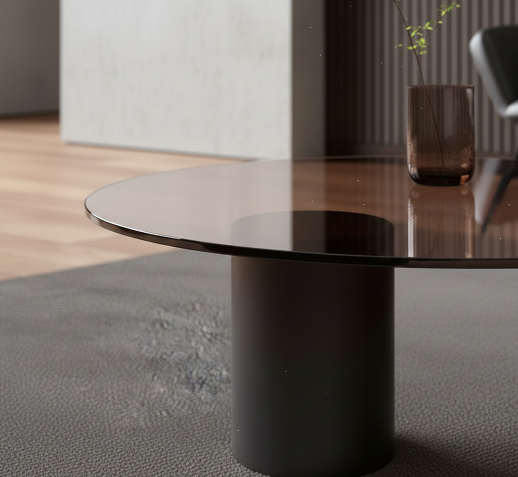 Base cilindrica de metal carbono Superficie en cristal templado de alta resistencia.
