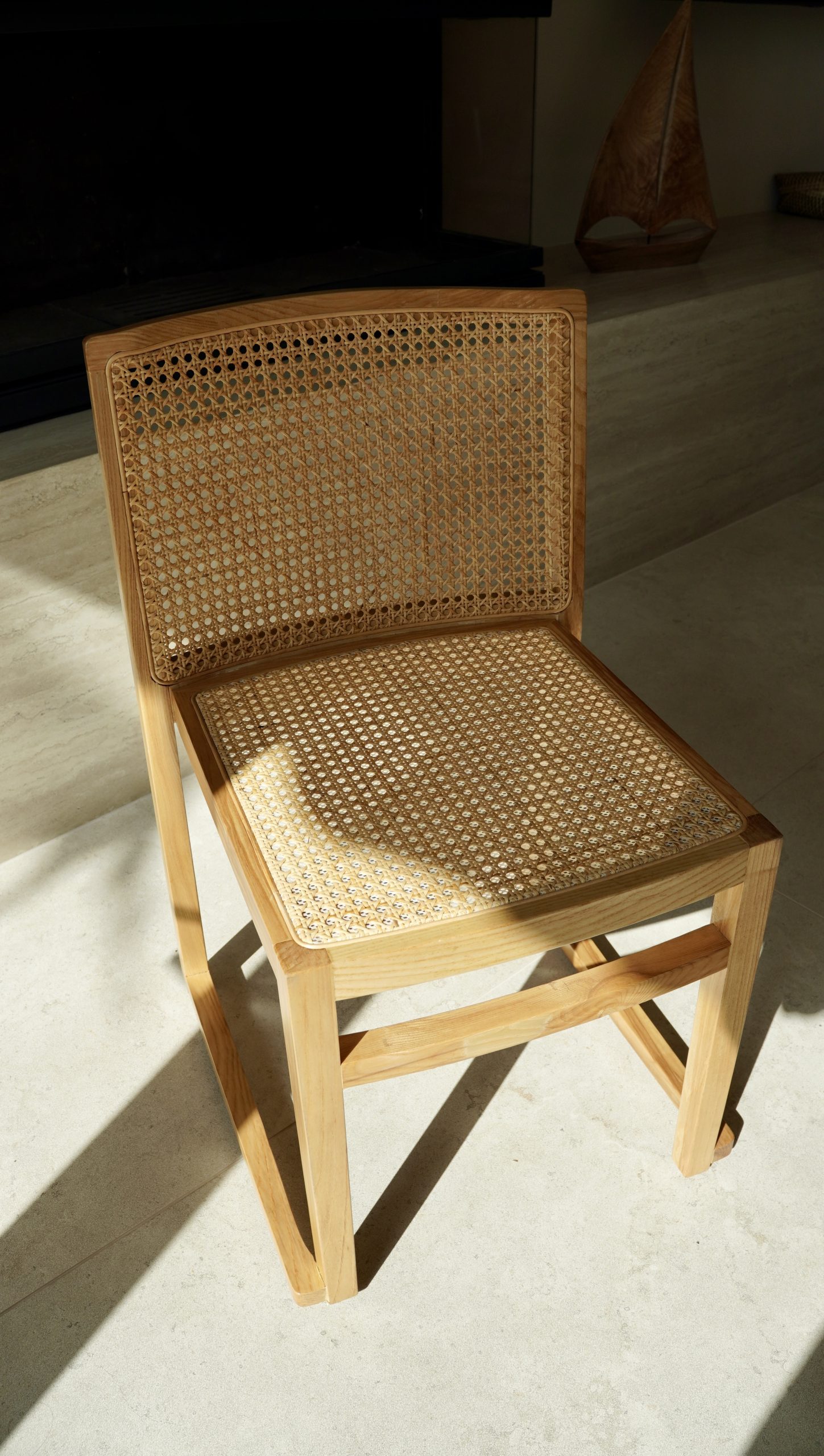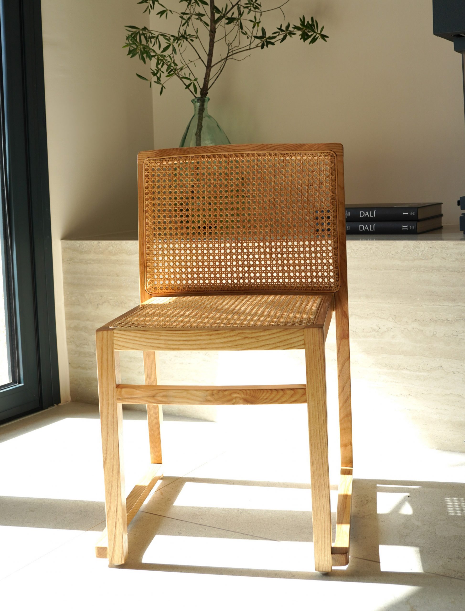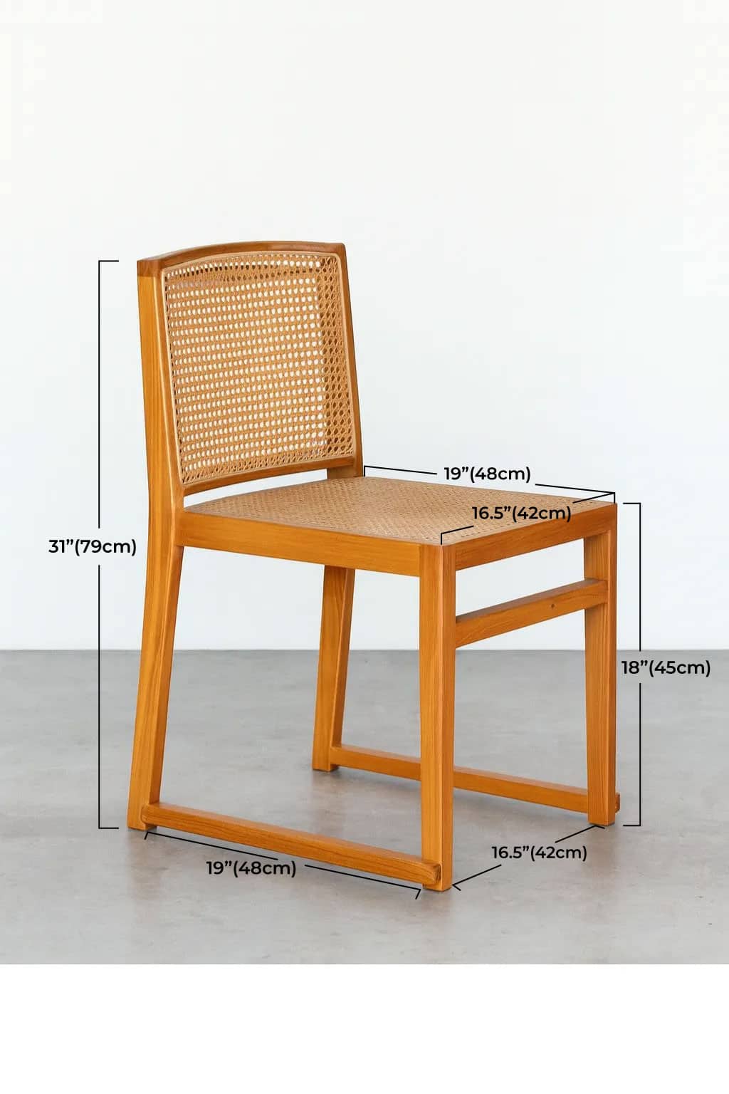 Silla de comedor en madera maciza de teca y rejilla de ratán